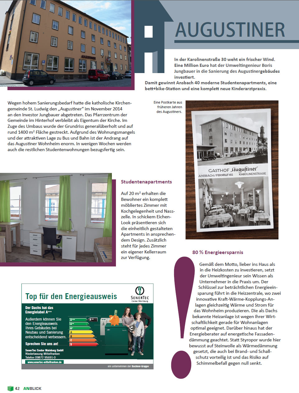 Bericht über das Augustiner Wohnheim in der Regionalzeitschrift AN-Blick